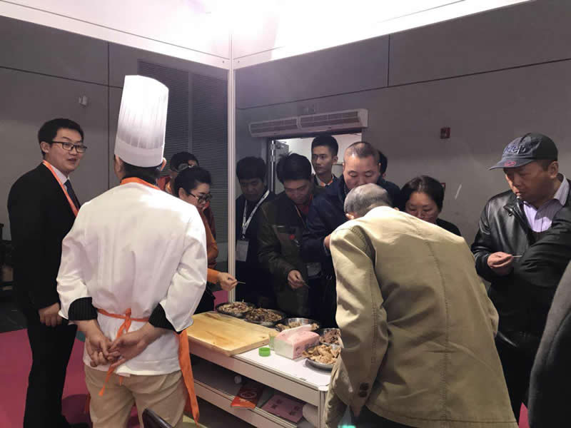 前来参观的客户正在试吃用”隆泰“香精系列制作的卤制品,都赞不绝口!